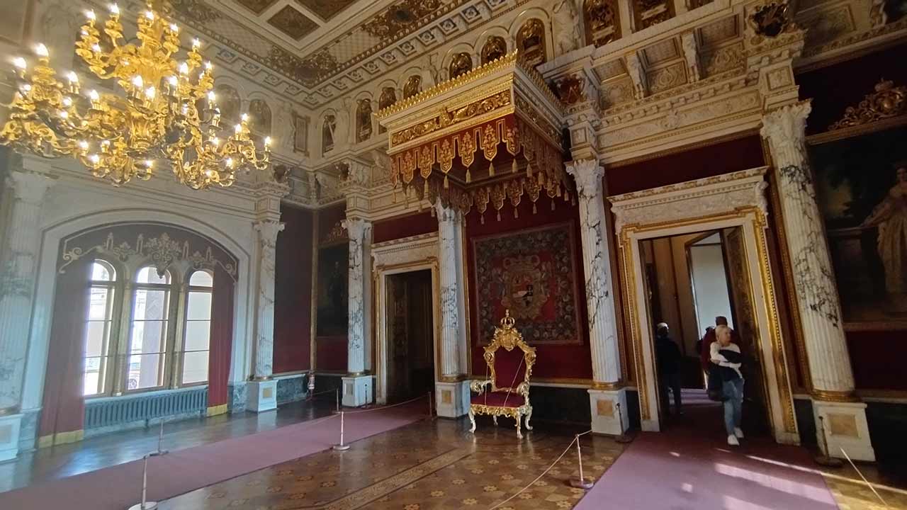 A visita interna é relativamente rápida, cerca de uma hora, já que apenas alguns andares são abertos ao público. Foi ali que descobri algo que eu não sabia: o castelo é, atualmente, a sede do Parlamento de Mecklenburg-Vorpommern. Com agendamento, inclusive, é possível assistir às sessões parlamentares. Nós não agendamos, mas achei essa informação curiosa e interessante.