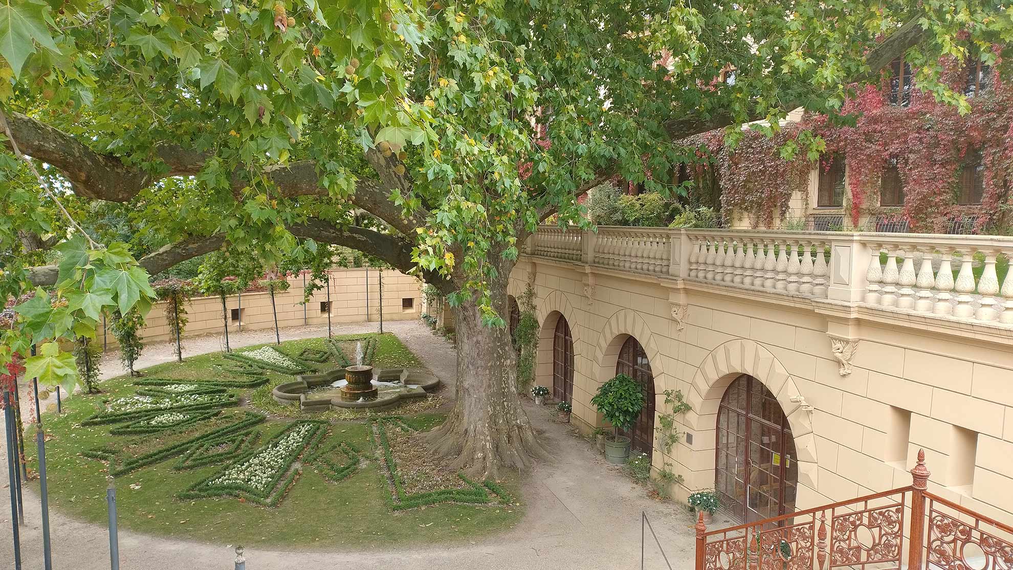 O jardim fica de frente para a ilha onde está o castelo, mas deixamos a visita à ilha e ao interior do castelo para o dia seguinte. Eu tinha lido que o castelo era gigantesco, com mais de 600 quartos (algumas fontes falam em mais de 700 ou 800 e até 900), e achei que precisaria de muito tempo. Só depois descobri que apenas dois ou três andares são abertos à visitação, o que tornaria possível visitar tudo em menos tempo. Mesmo assim, não me arrependi de ter separado os dias dessa forma.